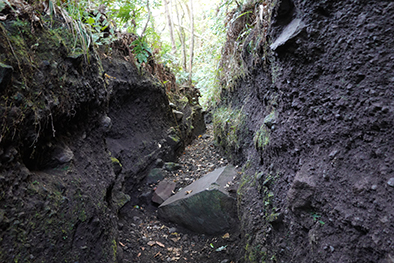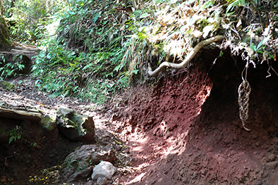 登山道にて赤色溶岩石も見られました。